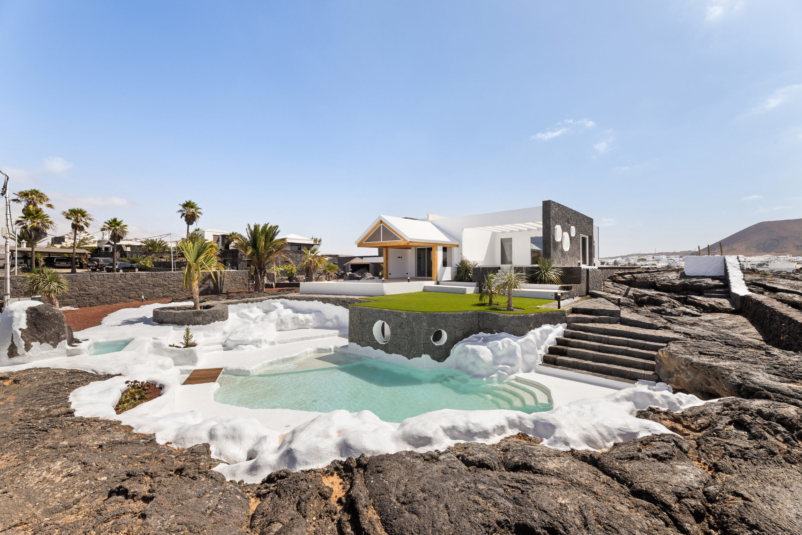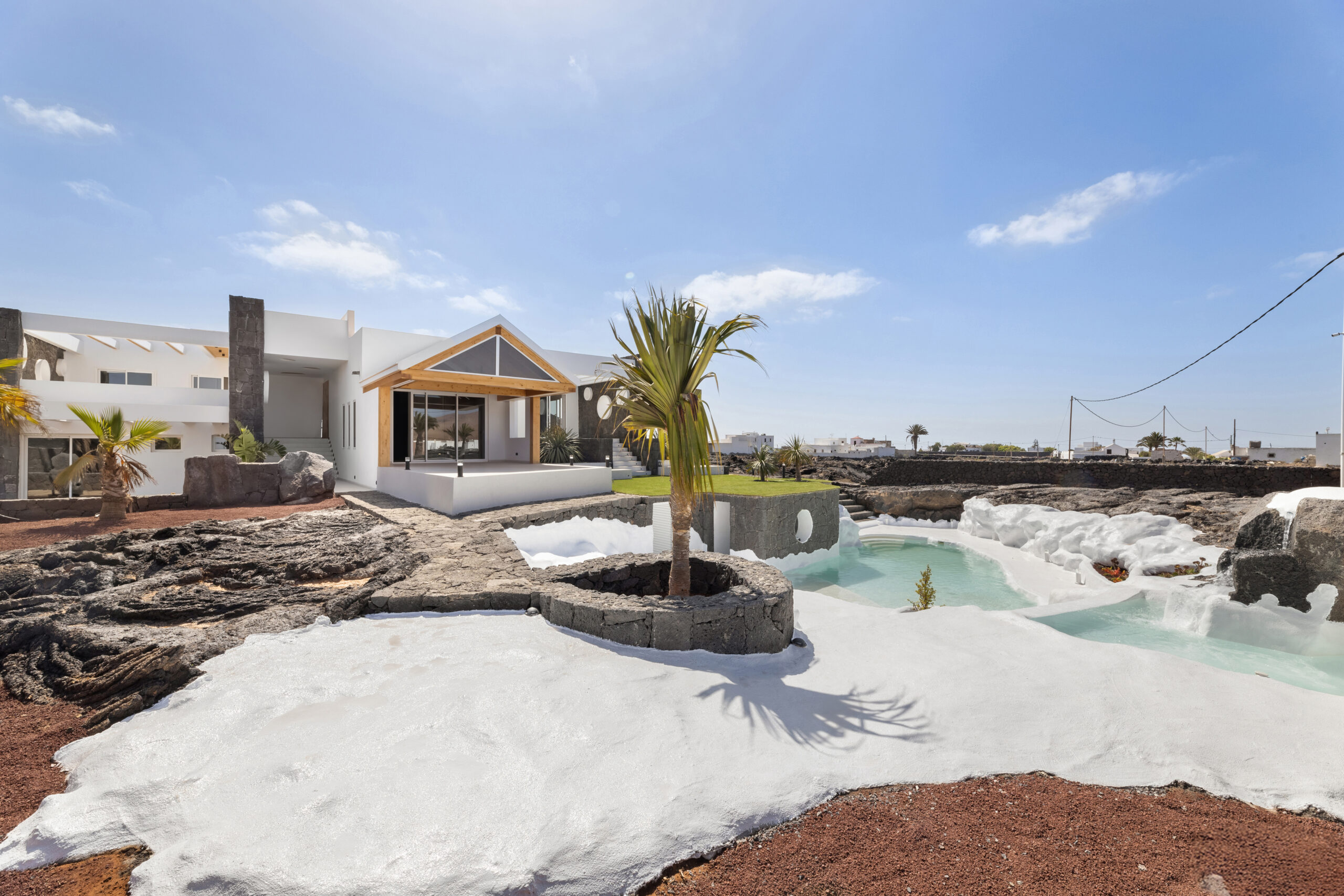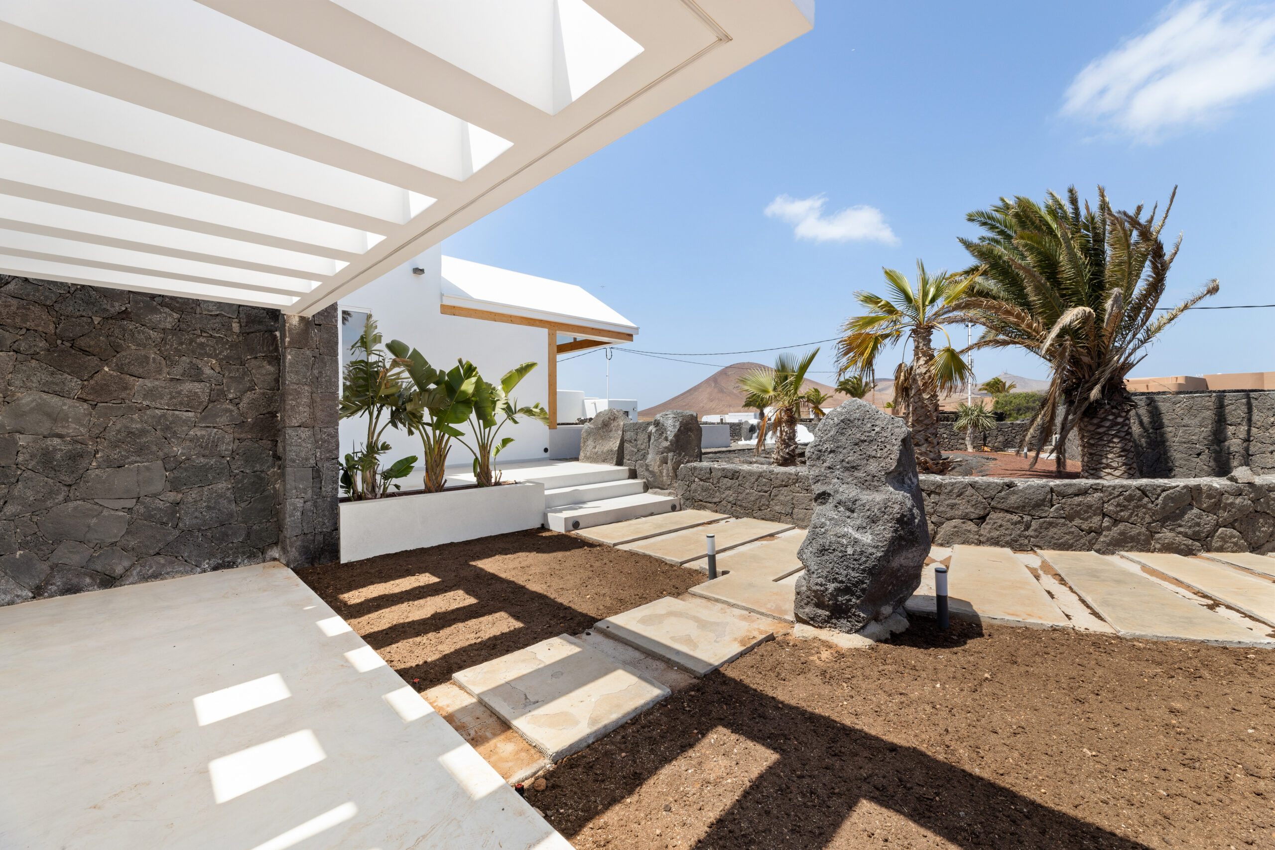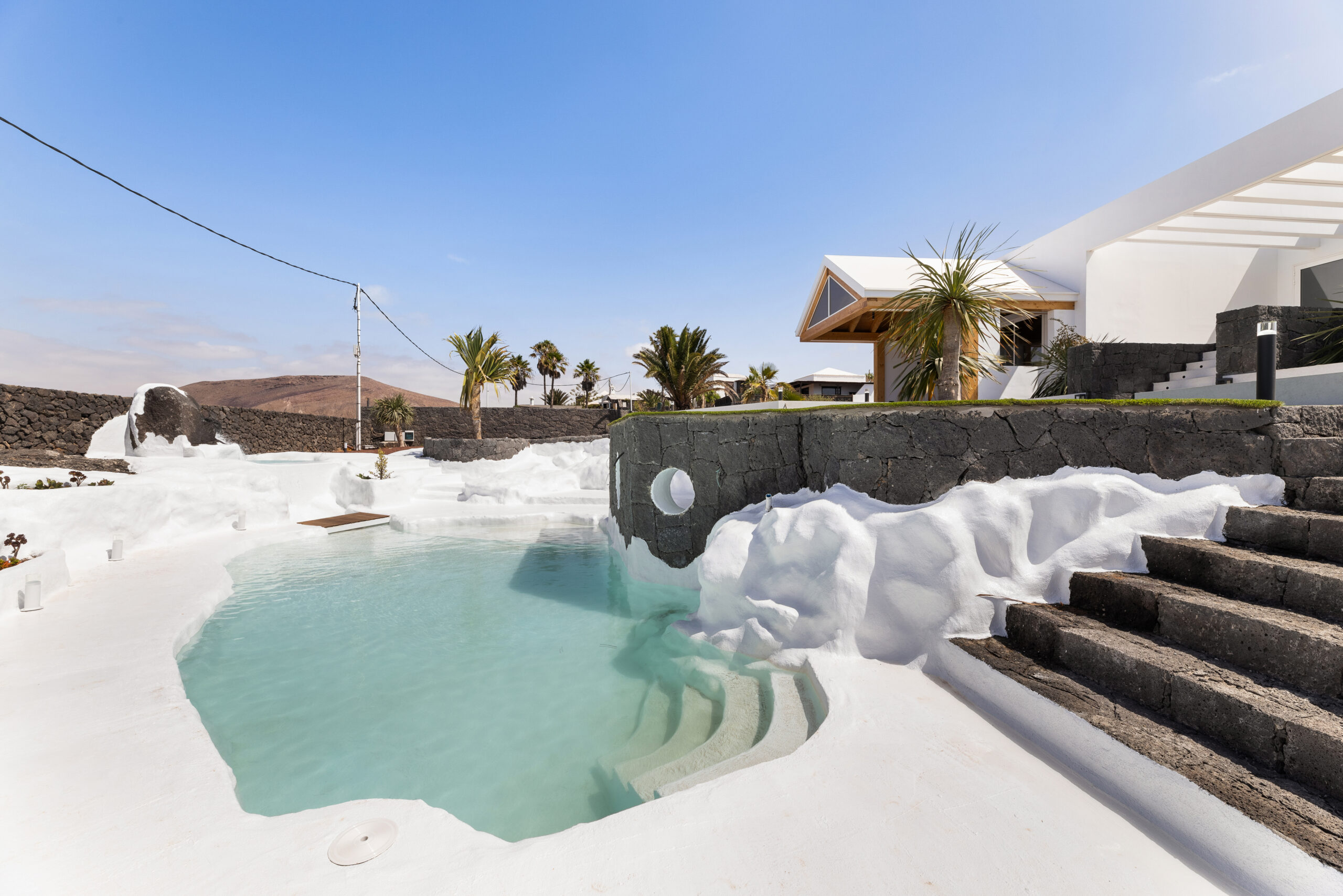 La zona exterior brinda paz y tranquilidad con una espectacular zona de piscina estilo Manrique, con jacuzzi, donde el blanco, el azul y el negro del volcán evocan la serenidad isleña y junto a la búsqueda de bienestar en armonía con el entorno, la vivienda incluye una elegante sauna con acceso directo al exterior, conectando cuerpo y naturaleza.