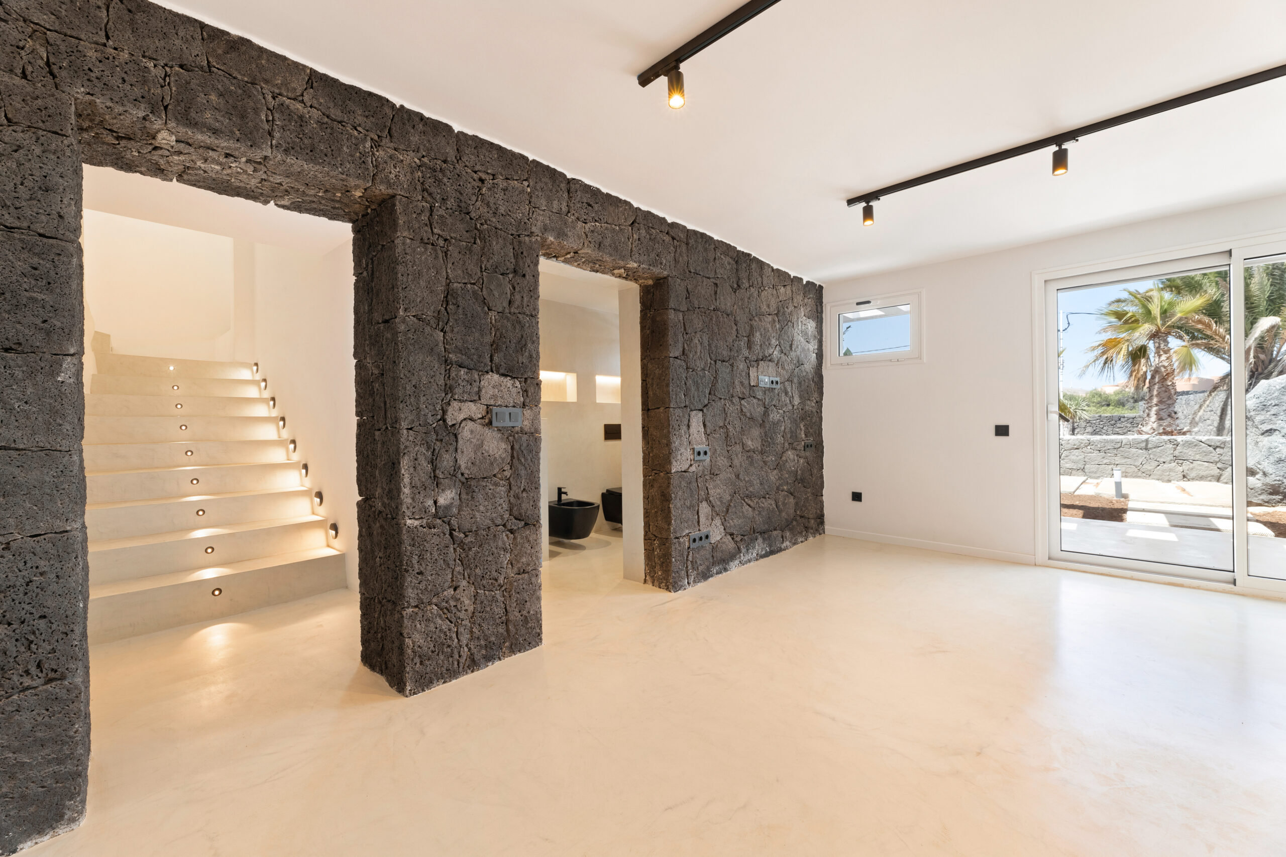 Construida de forma sostenible con materiales de primera calidad sobre un terreno de lava solidificada, la casa no solo respeta el entorno: se funde con él, convirtiéndose en una extensión armónica del paisaje. Los materiales naturales, como la piedra volcánica y la madera, dialogan con líneas arquitectónicas limpias y contemporáneas, logrando una integración visual y emocional con la tierra que la sostiene.